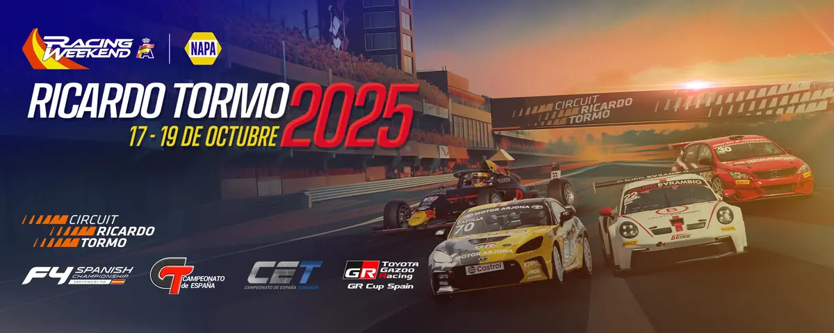 El NAPA Racing Weekend regresa al Circuit Ricardo Tormo de Valencia este fin de semana para vivir dos jornadas repletas de adrenalina. Durante este sábado 18 y domingo 19 de octubre, el Campeonato de España de Fórmula 4, el Campeonato de España de GT y Turismos y la Toyota GR Cup Spain se dan cita para acercar sus competiciones al público valenciano.